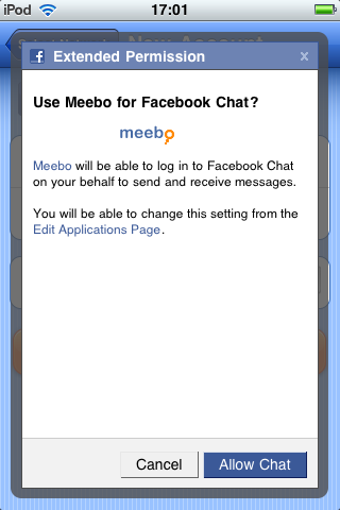 Meebo voor iPhone heeft nadelen ten opzichte van de Android versie. Door de effectieve push-functie van de iPhone (het automatisch melden en doorsturen van nieuwe mails of berichten) wil de software nogal wat berichten verzenden. Zo geef je bij Facebook-integratie toestemming aan Meebo om in te loggen op je Facebook account om berichten te sturen en te ontvangen. Gelukkig is dit ook uit te schakelen. Een groter nadeel t.o.v. de Android-versie is de noodzaak om een Meebo account te maken.